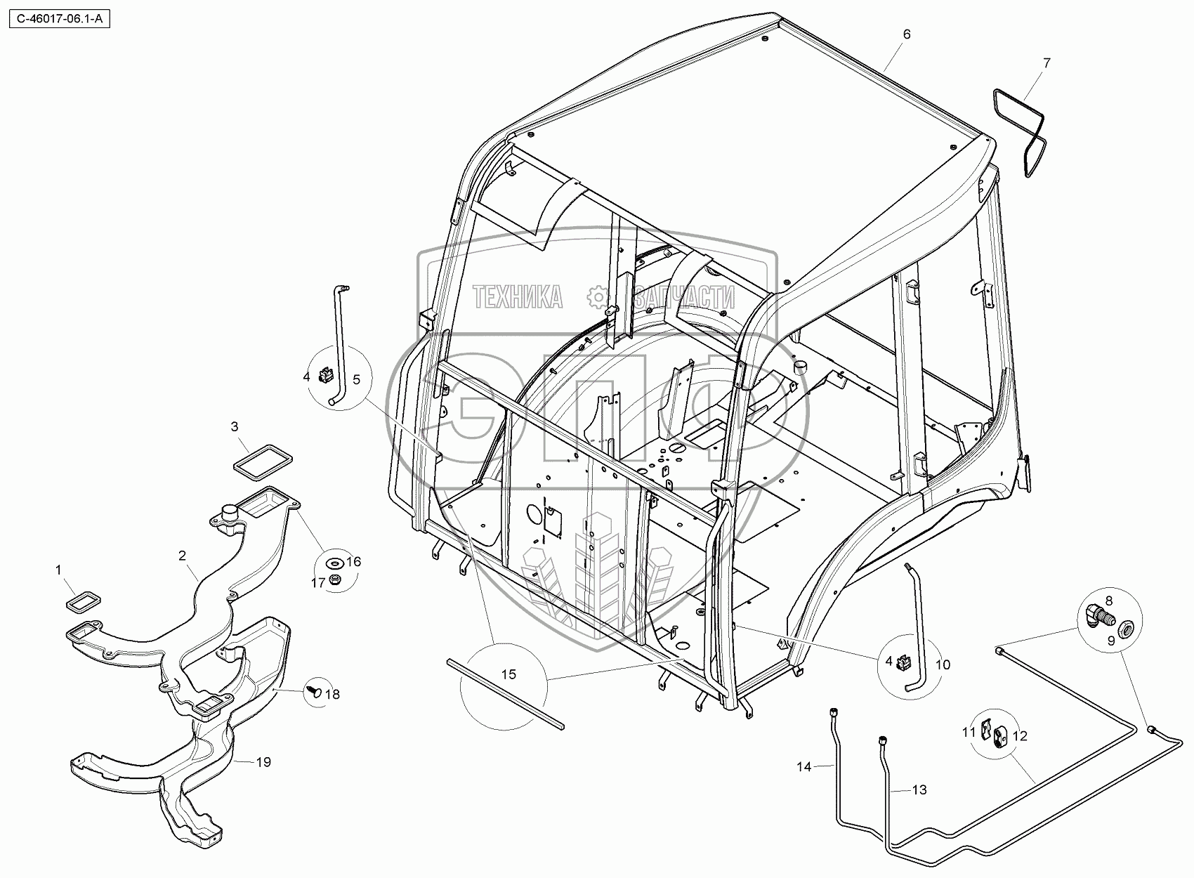 Каталог запасных частей к технике: RM-Terex TLB840SM, TLB840PM. 4067 46017 Cab Structure