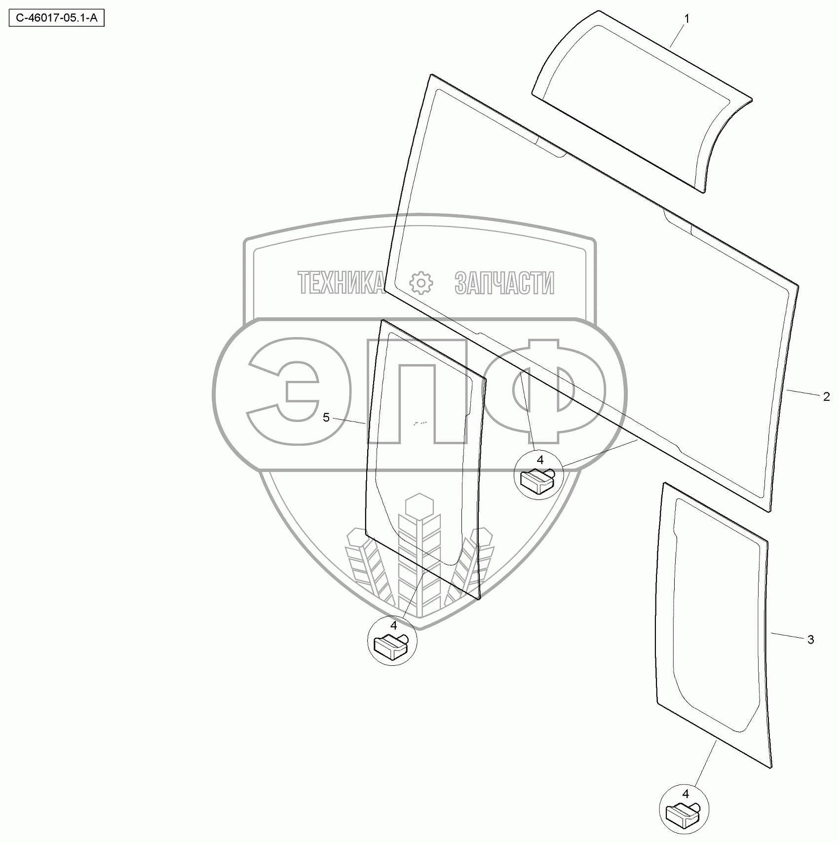 Каталог запасных частей к технике: RM-Terex TLB840SM, TLB840PM. 4067 46017 Front Windows