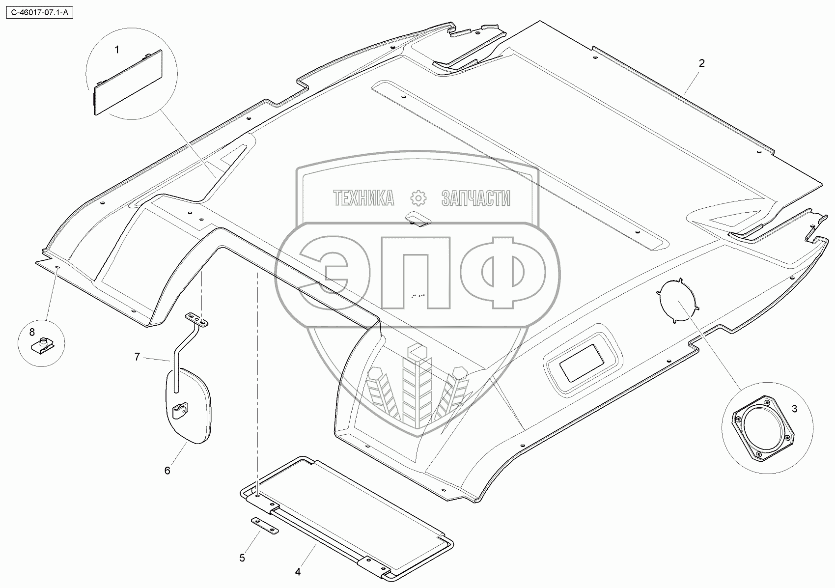 Каталог запасных частей к технике: RM-Terex TLB840SM, TLB840PM. 4067 46017 Roof Liner