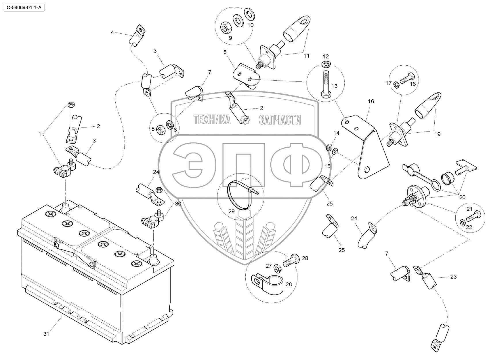 | 30 | 6110532M1 | Battery Terminal | Нет на складе | |