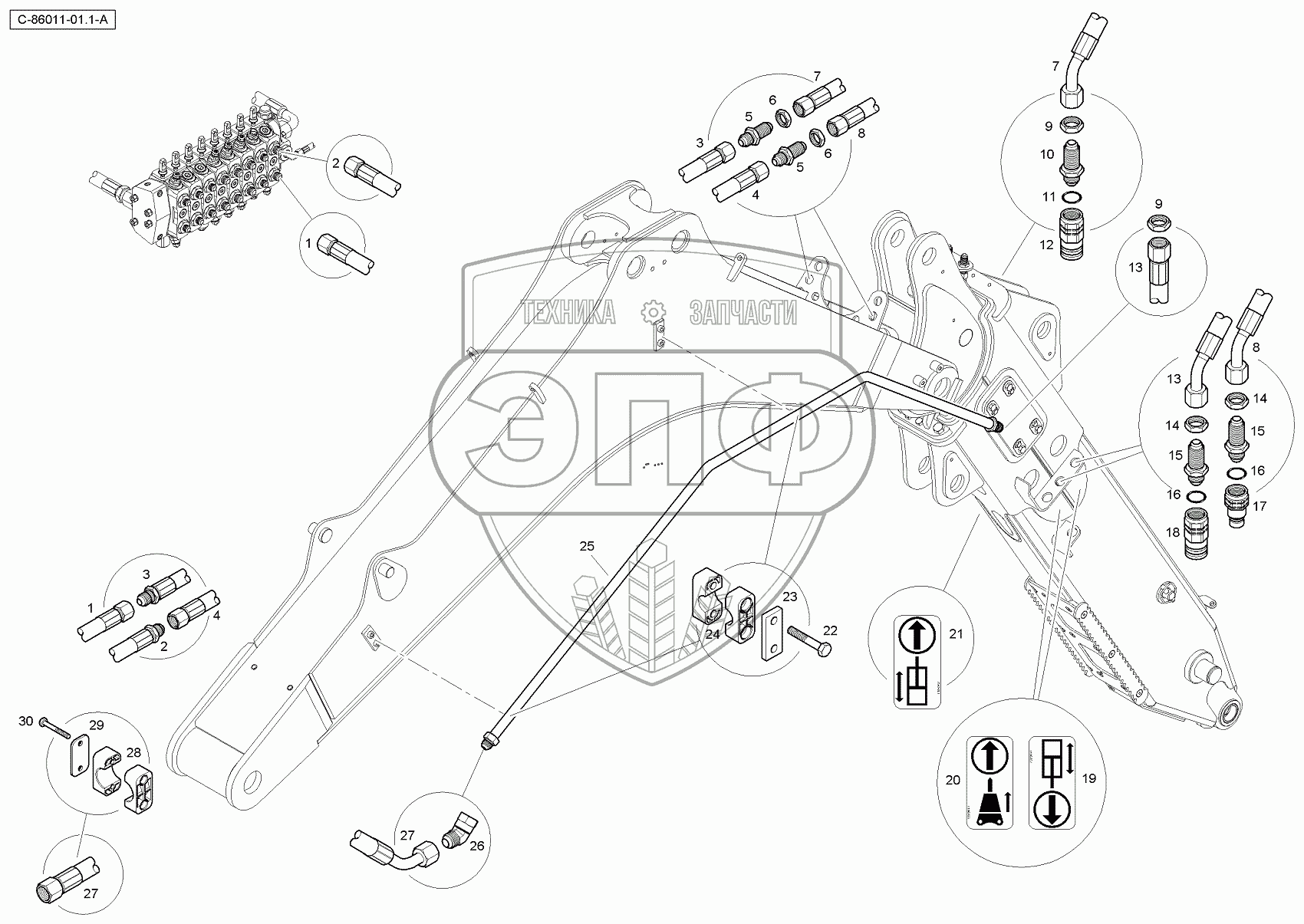 Каталог запасных частей к технике: RM-Terex TLB840SM, TLB840PM. 4067 86005 Auxiliary Hoses