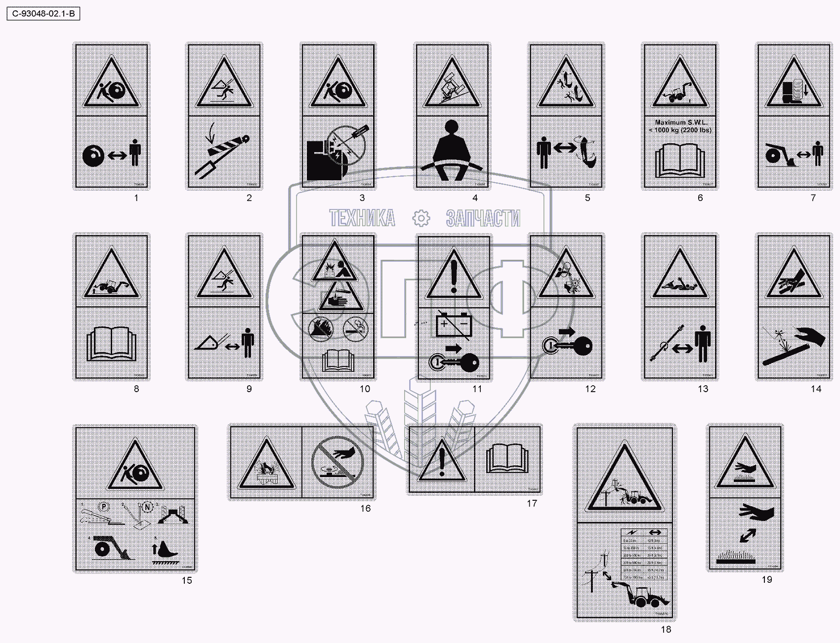 Каталог запасных частей к технике: RM-Terex TLB840SM, TLB840PM. 4067 93048 Decals - Warning