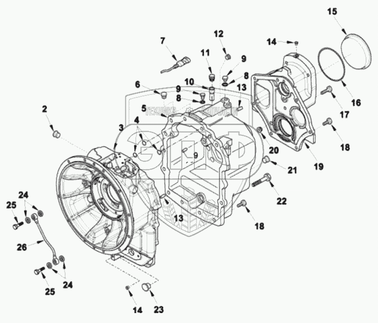 Каталог запасных частей к технике: RM-Terex TLB-815. Коробка, 2 привод колес