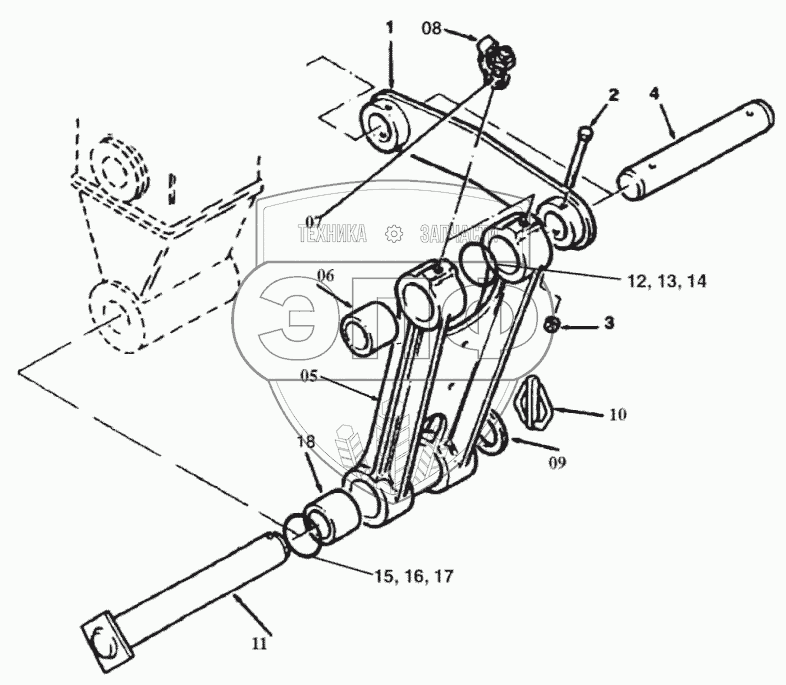 Каталог запасных частей к технике: RM-Terex TLB-815. Ковш экскаваторный, соединение