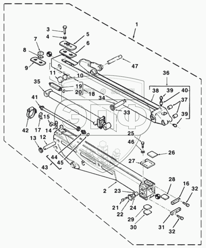 Каталог запасных частей к технике: RM-Terex TLB-815. Телескопическая рукоять - установка