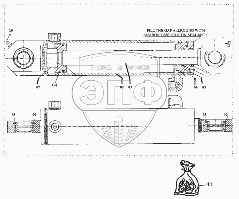 Каталог запасных частей к технике: RM-Terex TLB-815. Цилиндр управления