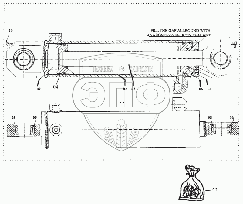 Каталог запасных частей к технике: RM-Terex TLB-815. Цилиндр управления