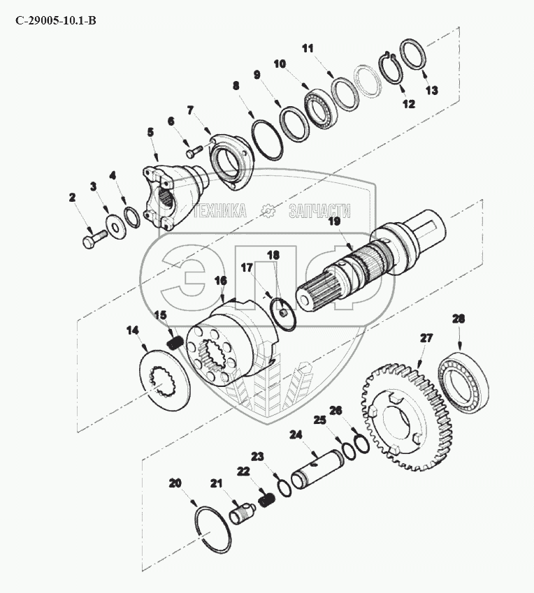 Каталог запасных частей к технике: RM-Terex TLB-815. Выходной вал КПП передний