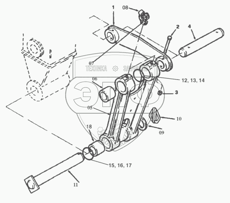 Каталог запасных частей к технике: RM-Terex TLB-825. Экскаваторный ковш. соединение