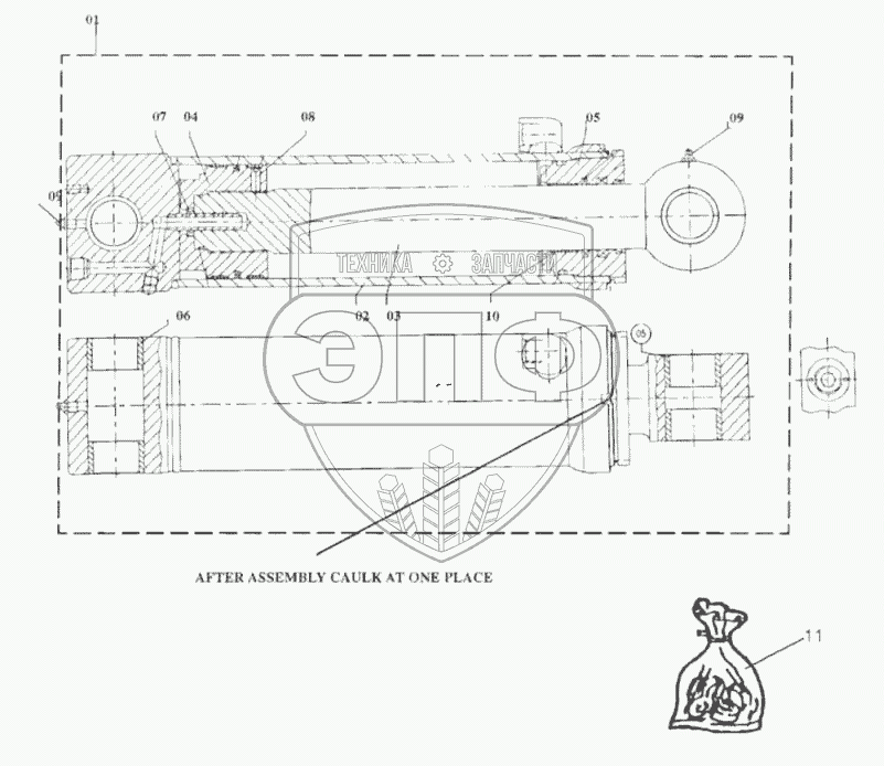Каталог запасных частей к технике: RM-Terex TLB-825. Цилиндр стрелы