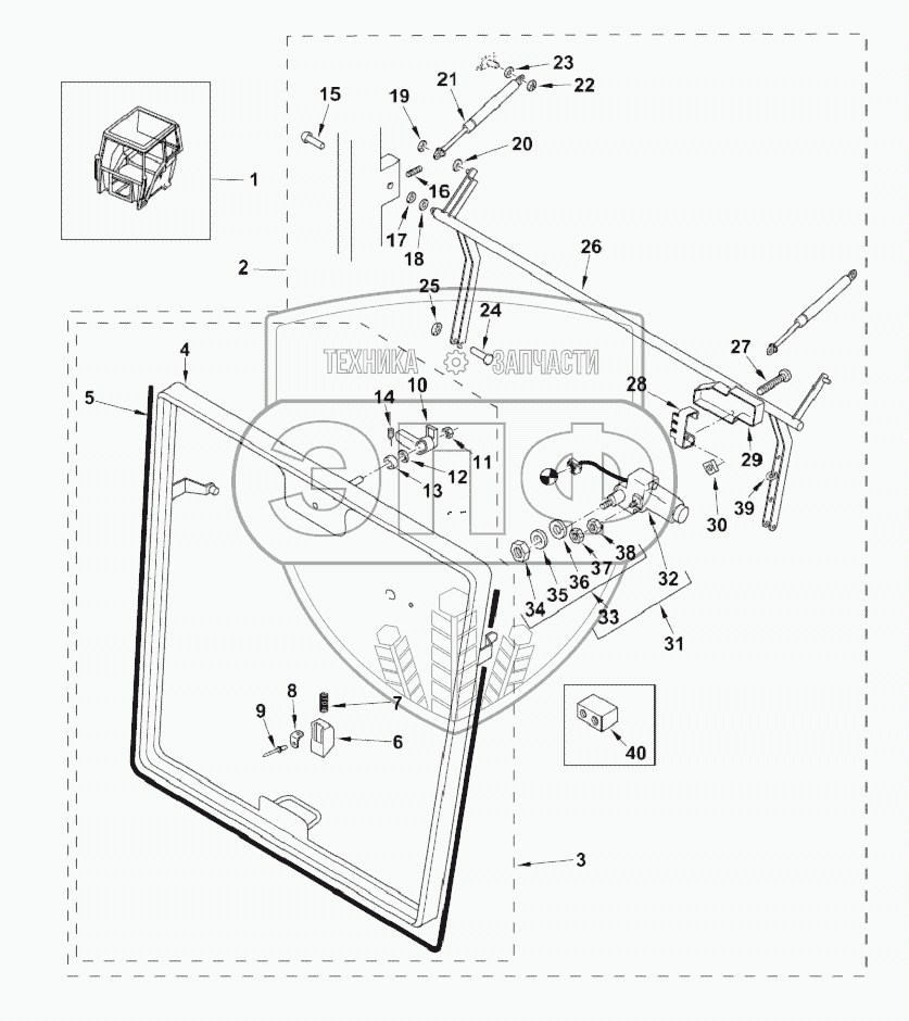 Каталог запасных частей к технике: RM-Terex TLB-825. Заднее окно