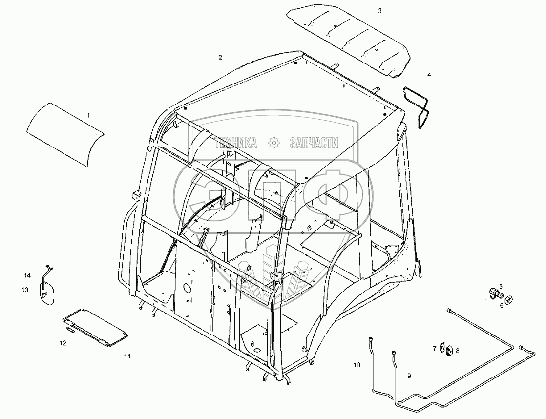 Каталог запасных частей к технике: RM-Terex TLB-840. Конструкция для навеса