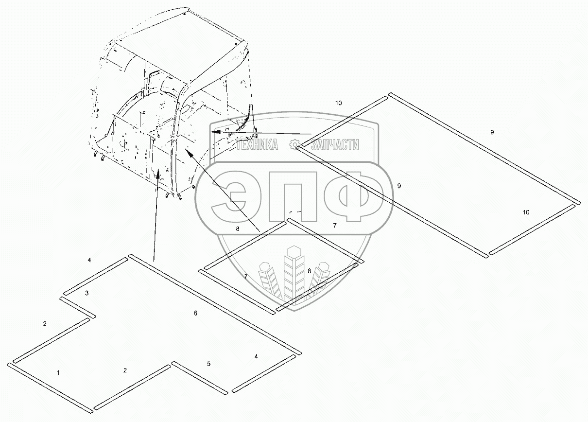 Каталог запасных частей к технике: RM-Terex TLB-840. Отделка кабины - уплотнения пластины пола
