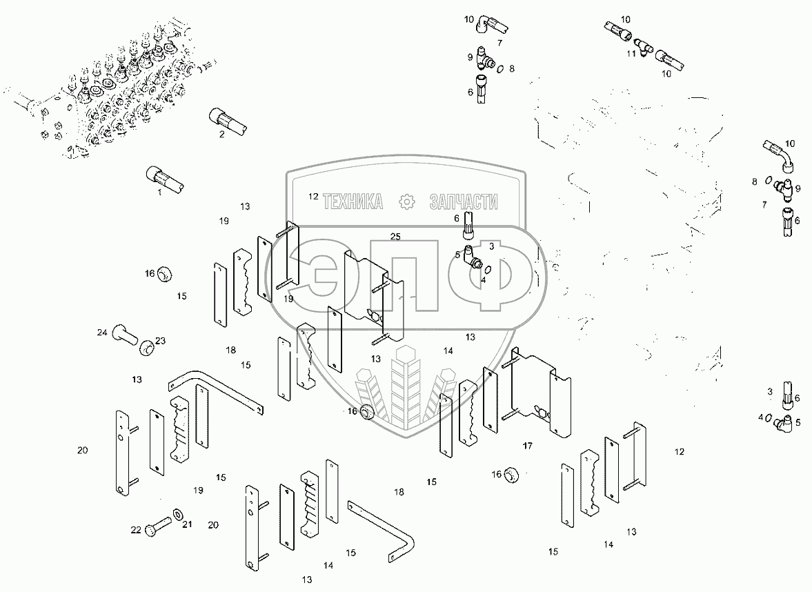 | 25 | 6112764M91 | Зажимная пластина патрубка в сборе | Нет на складе |