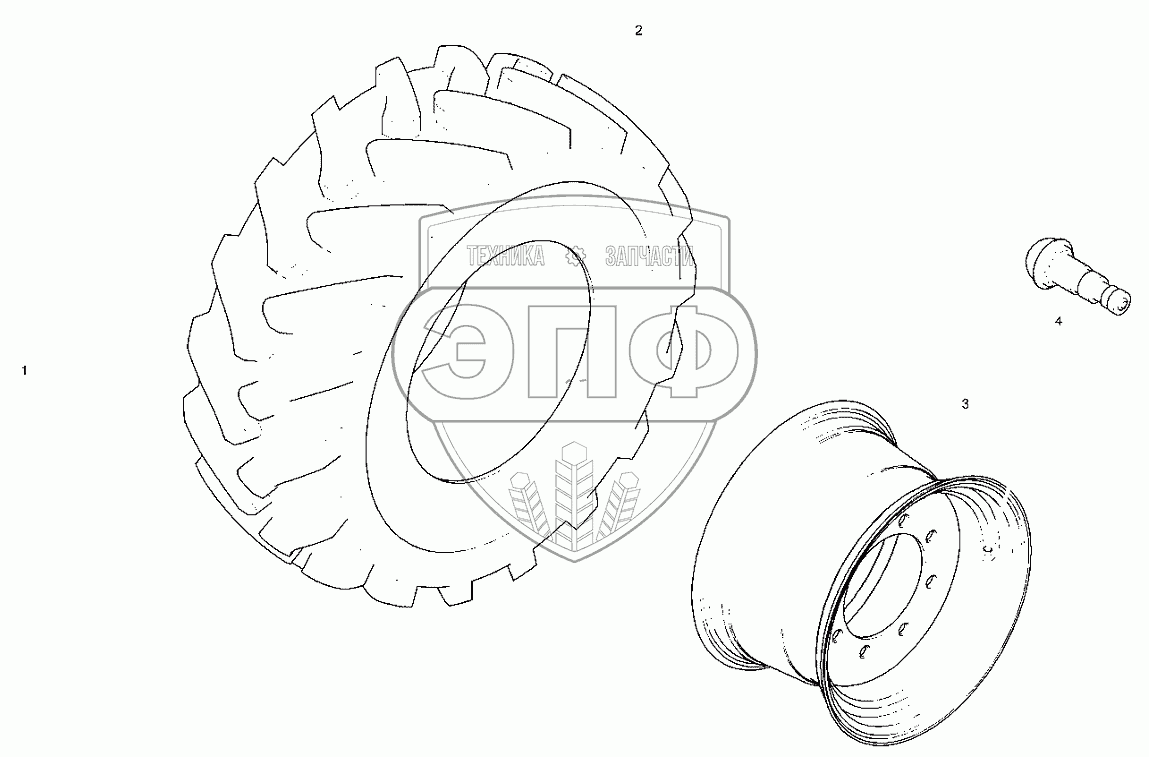 Каталог запасных частей к технике: RM-Terex TLB-840. Запасное колесо - Переднее - Желтый цвет