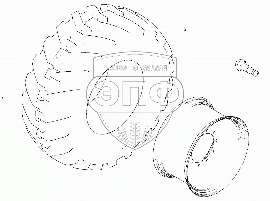 Каталог запасных частей к технике: RM-Terex TLB-840. Запасное колесо - Заднее - Белый цвет