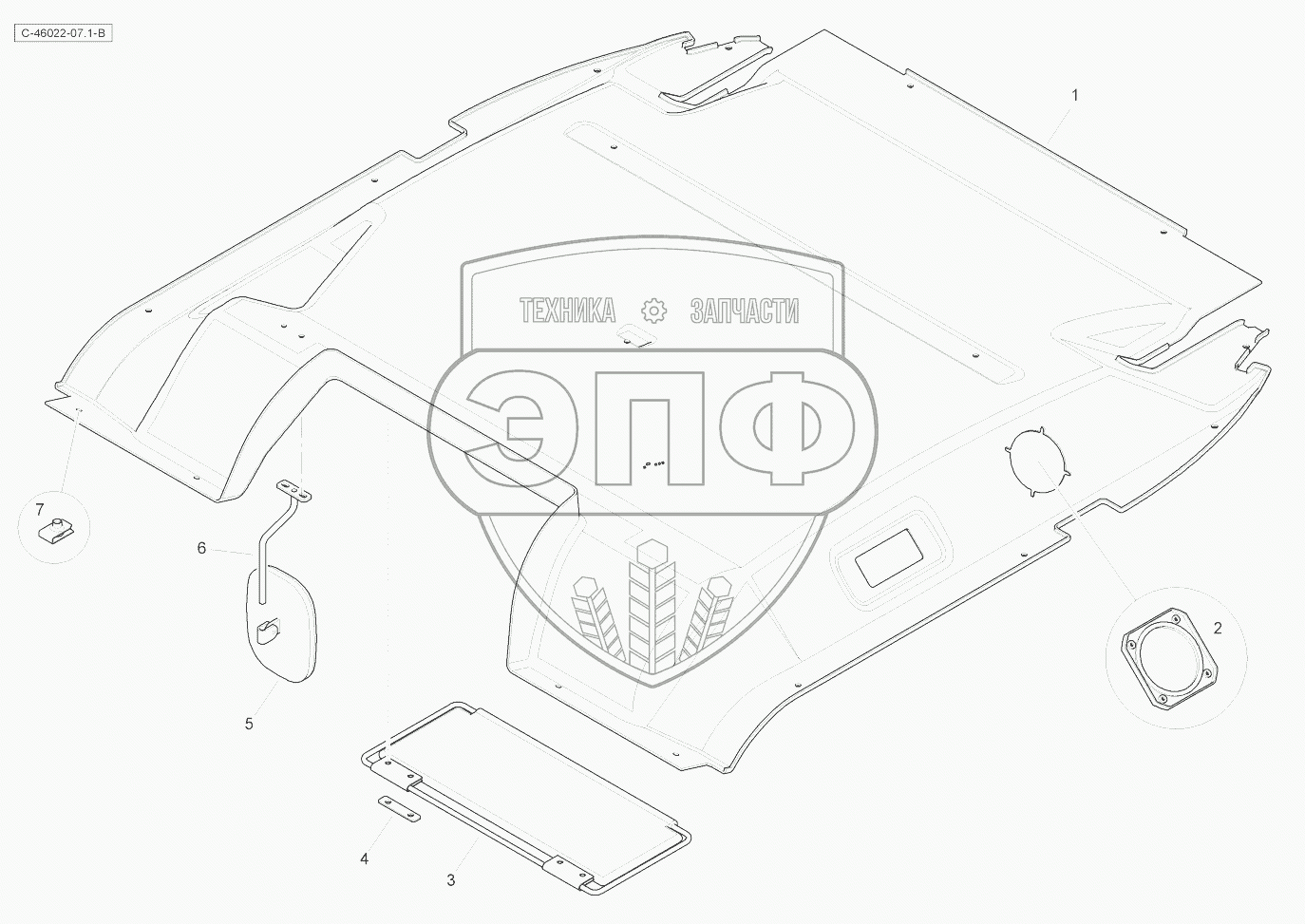 Каталог запасных частей к технике: RM-Terex TLB-890 (часть 2). Cab - Roof Liner