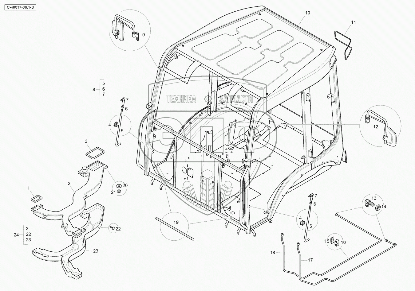 Каталог запасных частей к технике: RM-Terex TLB-990 Tier 3. Cab - Structure