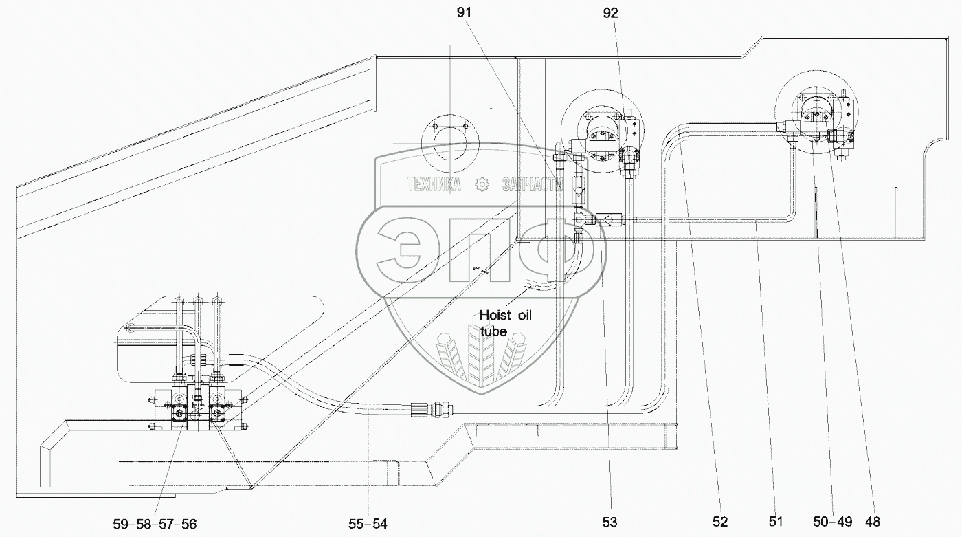 Каталог запасных частей к технике: SANY QY50CS93. 10124601 Piping, hydraulic, superstructure