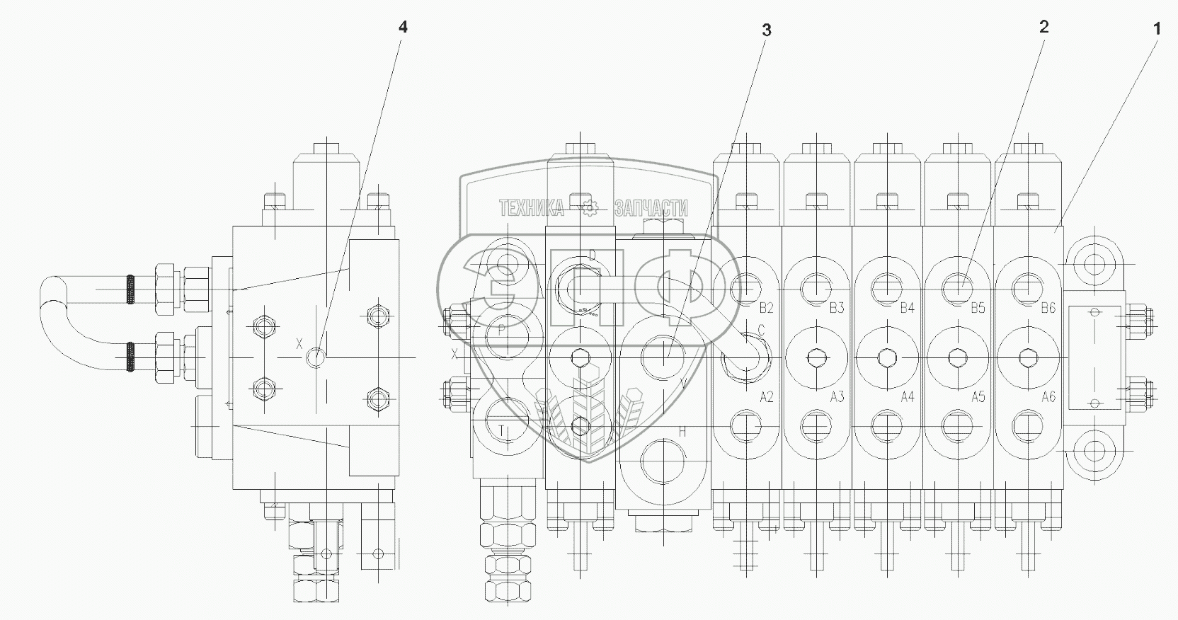 Каталог запасных частей к технике: SANY QY50CS93. 10138579 Multi-way valve assy