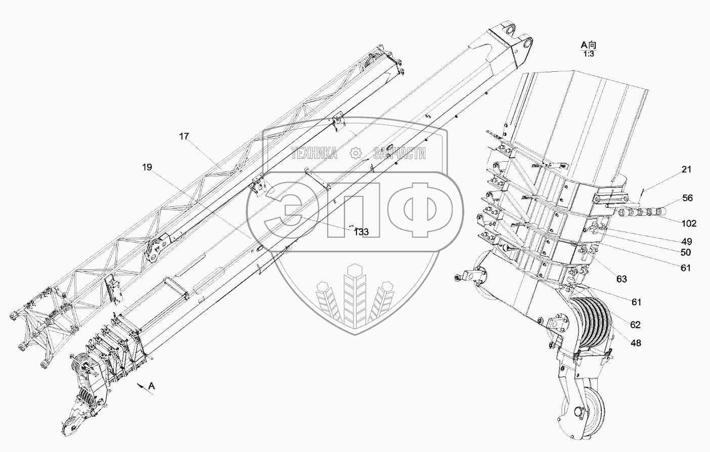 Каталог запасных частей к технике: SANY QY50CS93. 10663087 Boom