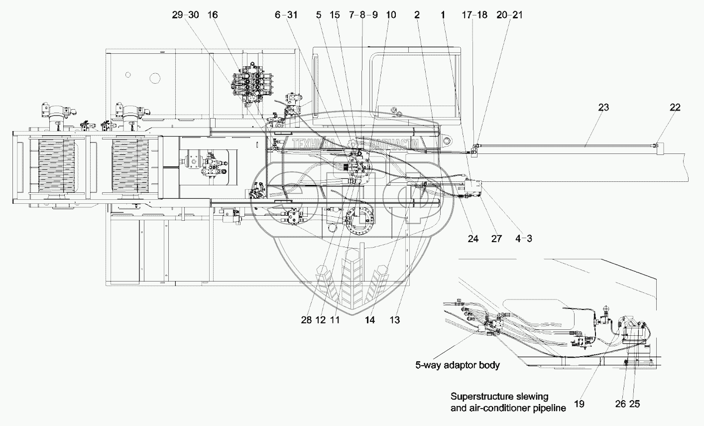 Каталог запасных частей к технике: SANY QY50CS93. 11008120 Piping, hydraulic, elevating