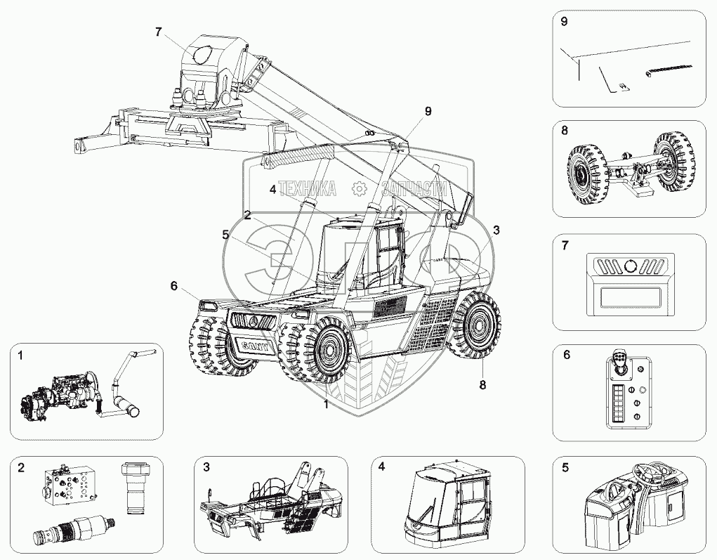 Каталог запасных частей к технике: SANY RSC45C. 10451014 RSC45-5M Reach Stacker body