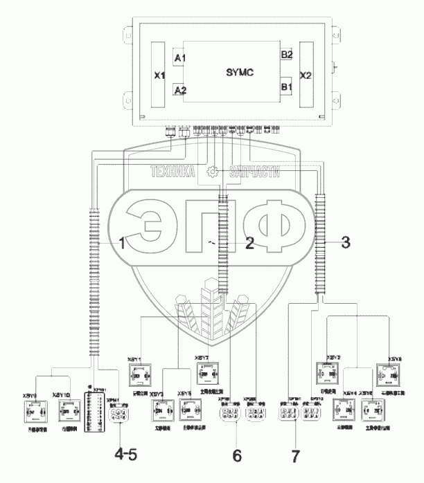 Каталог запасных частей к технике: SANY SDCY90K6C. 10056330 Harness, assembly, spreader