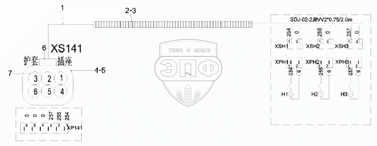 Каталог запасных частей к технике: SANY SDCY90K6C. 12545846 Harness, rudder signal lamp