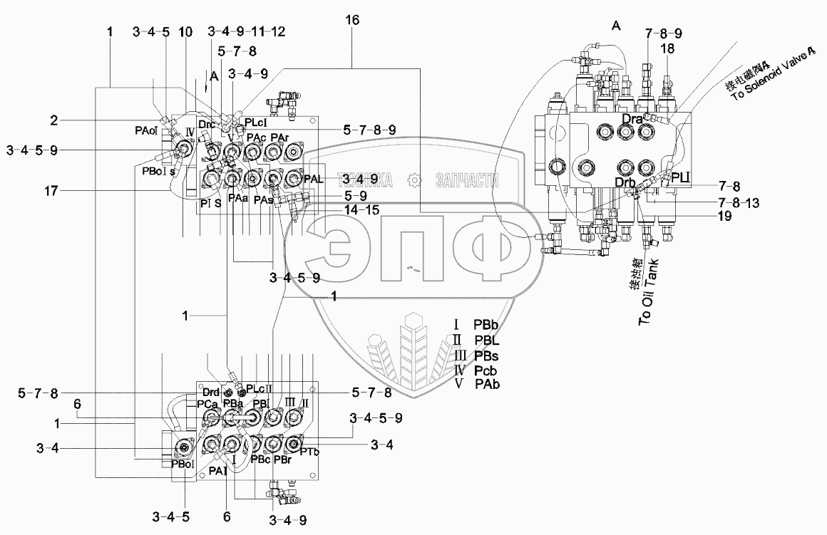 Каталог запасных частей к технике: SANY SY135C8. 10165924 Pipeline AS, main valve