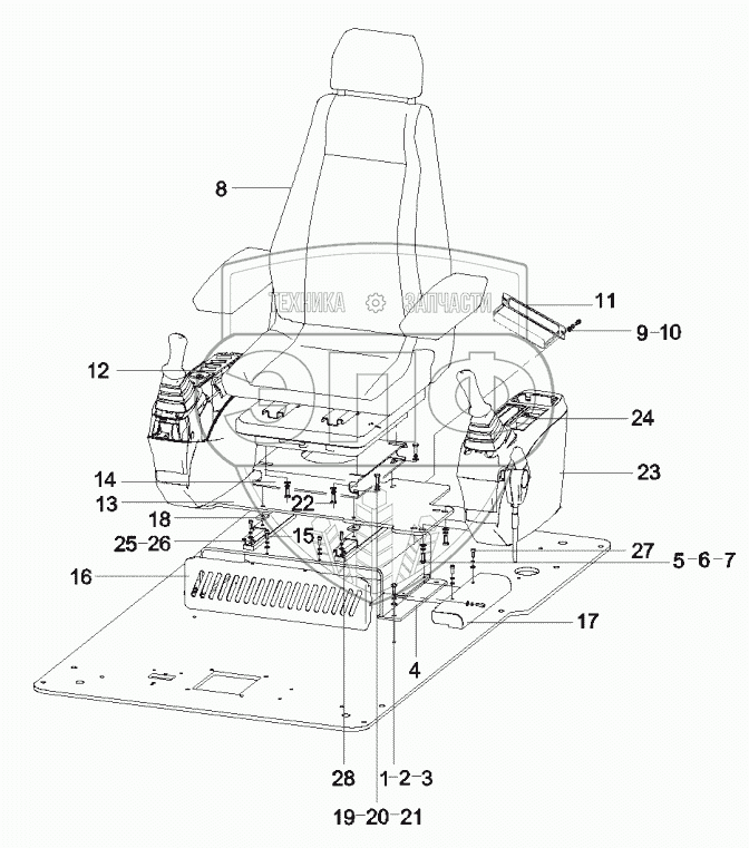 Каталог запасных частей к технике: SANY SY135C8. 10458174 Seat and control console AS