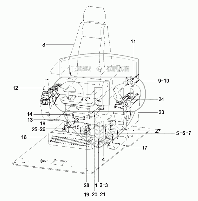 Каталог запасных частей к технике: SANY SY335C8. 10458174 Seat and control console AS