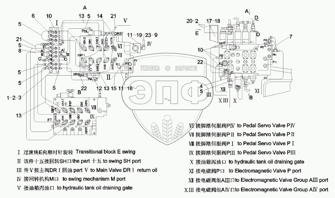 Каталог запасных частей к технике: SANY SY335C8. 11176769 Pipeline AS, main valve