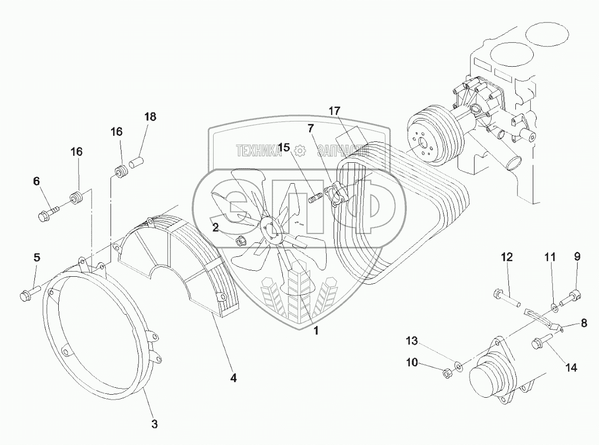 Каталог запасных частей к технике: SANY SY335C8. 60046522 Fan & Belt, Fan