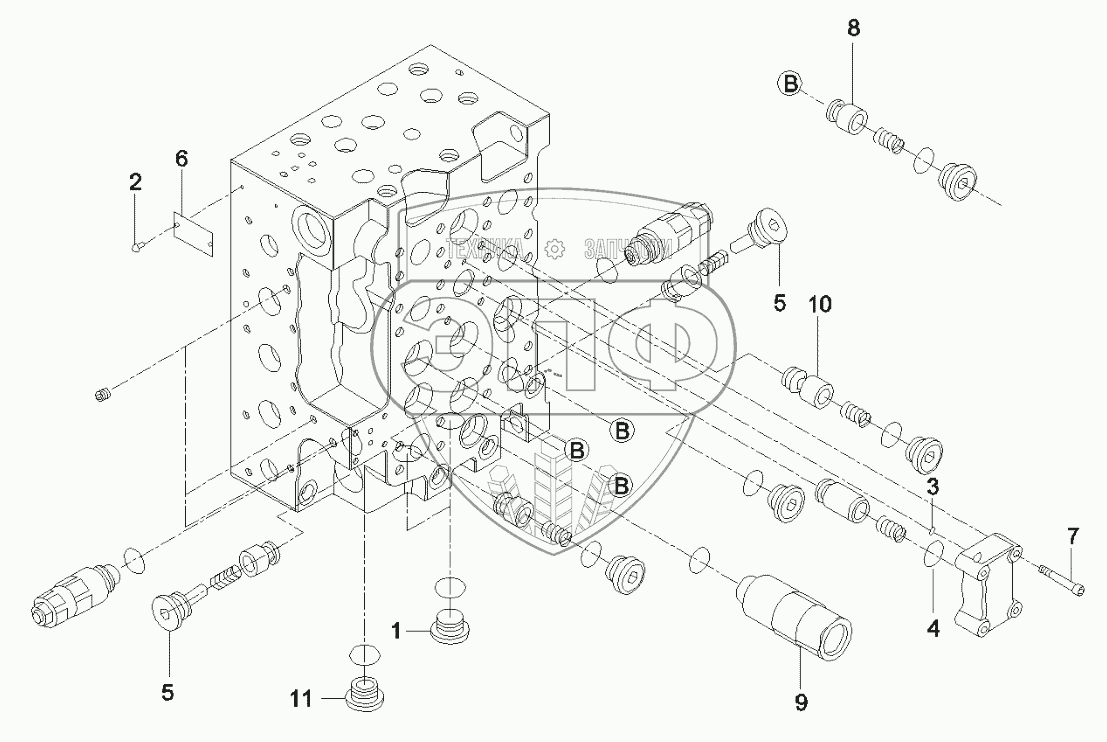 Каталог запасных частей к технике: SANY SY335C8. B220401000190 Valve, main control