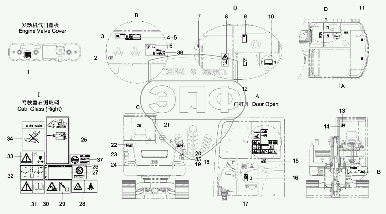 | 22 | A820601991049 | Decal, warning, counterweight | Нет на складе | |