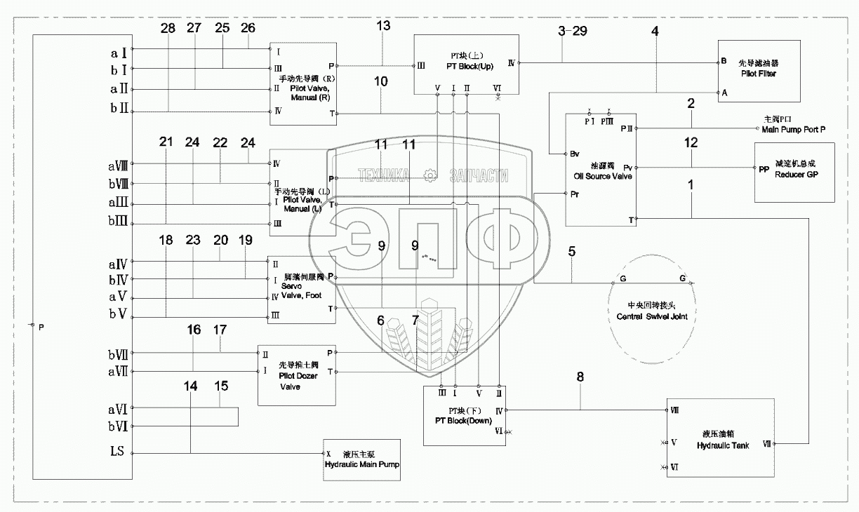Каталог запасных частей к технике: SANY SY55C9. 12112475 Pipeline, pilot