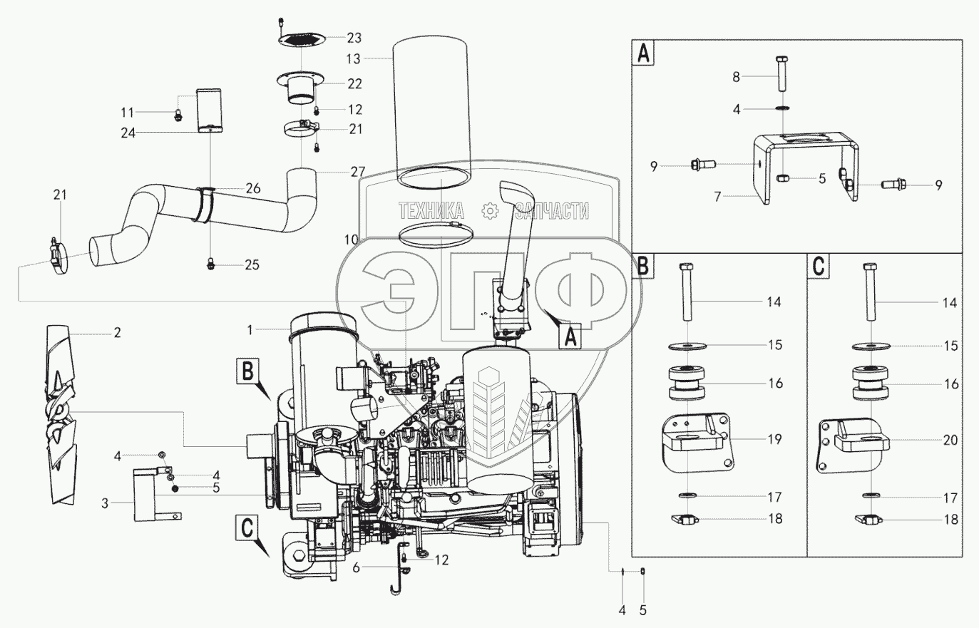 Каталог запасных частей к технике: SDLG B877. Engine assembly
