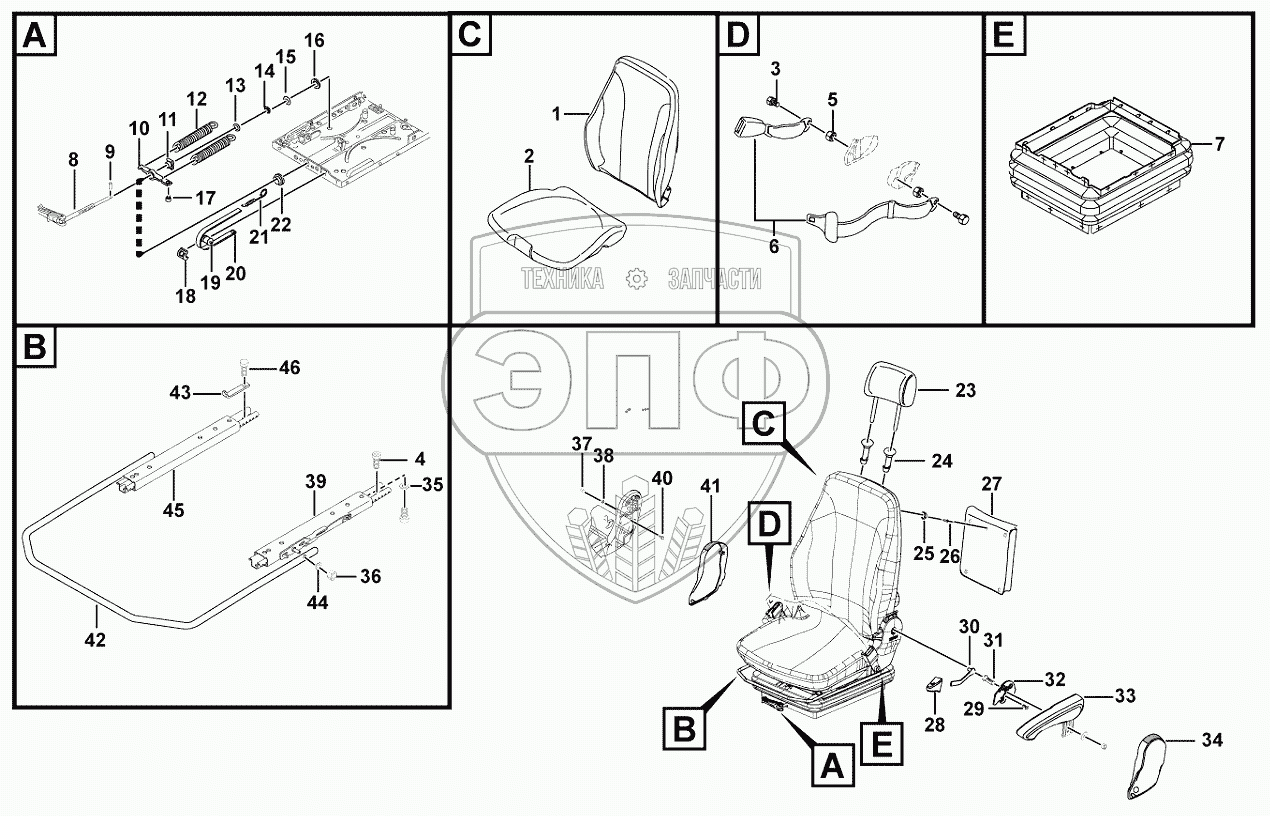 Каталог запасных частей к технике: SDLG L948. Driver seat LG06A (350201)