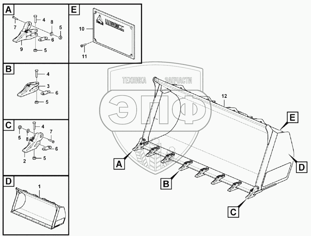 Каталог запасных частей к технике: SDLG L953N. Bucket