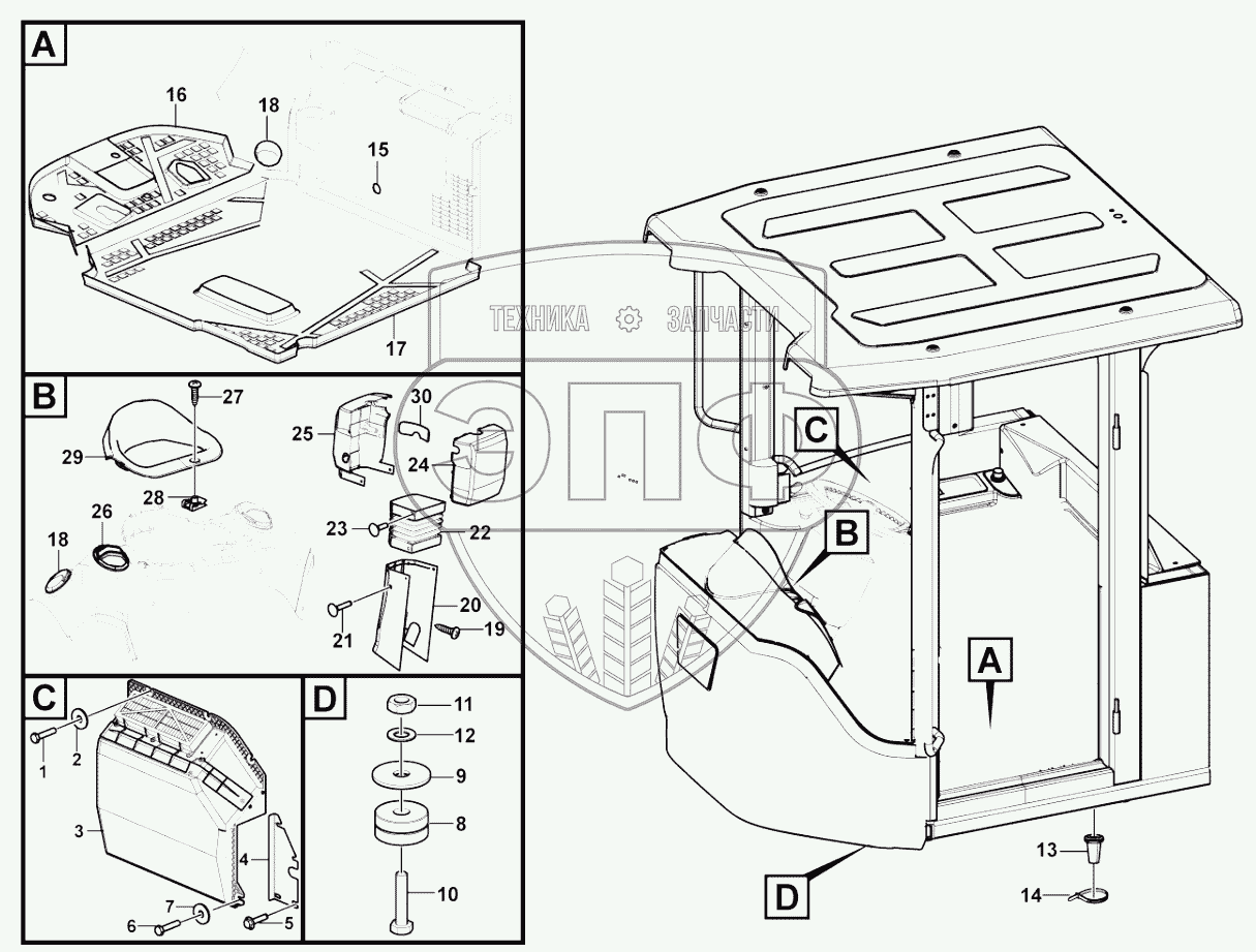 Каталог запасных частей к технике: SDLG L956F. Cab accessories