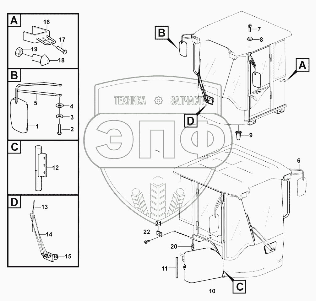 Каталог запасных частей к технике: SDLG L956F. Cab assembly