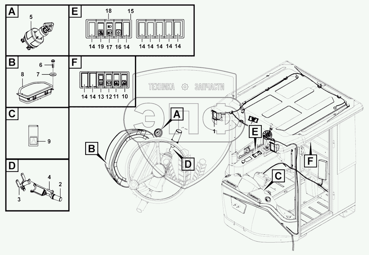 Каталог запасных частей к технике: SDLG L956F. Cab electric system