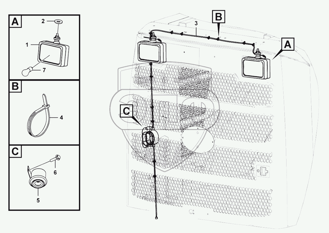 Каталог запасных частей к технике: SDLG L956F. Engine hood electric system