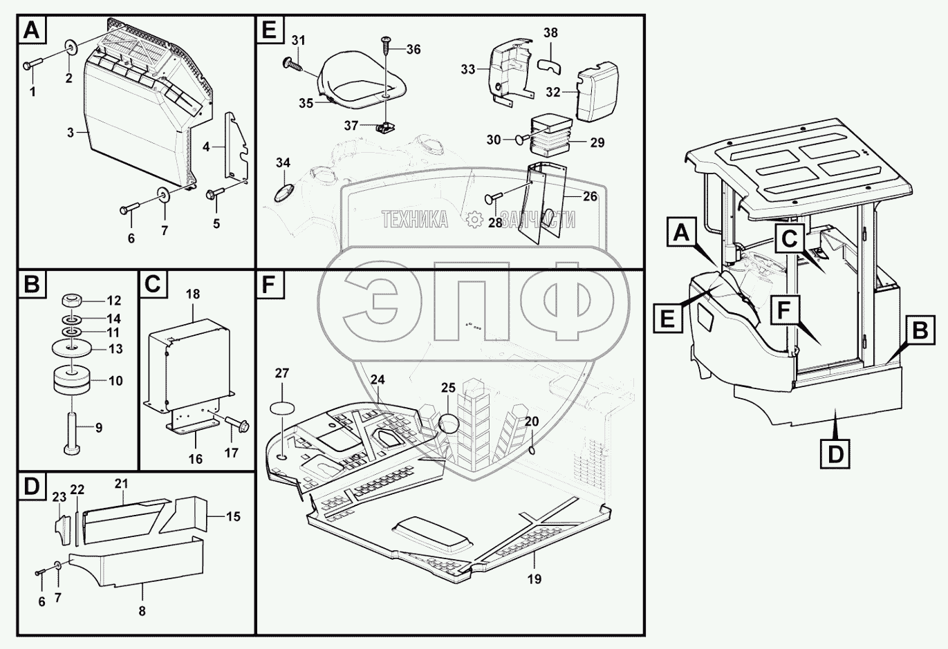 Каталог запасных частей к технике: SDLG L958F. Cab accessory