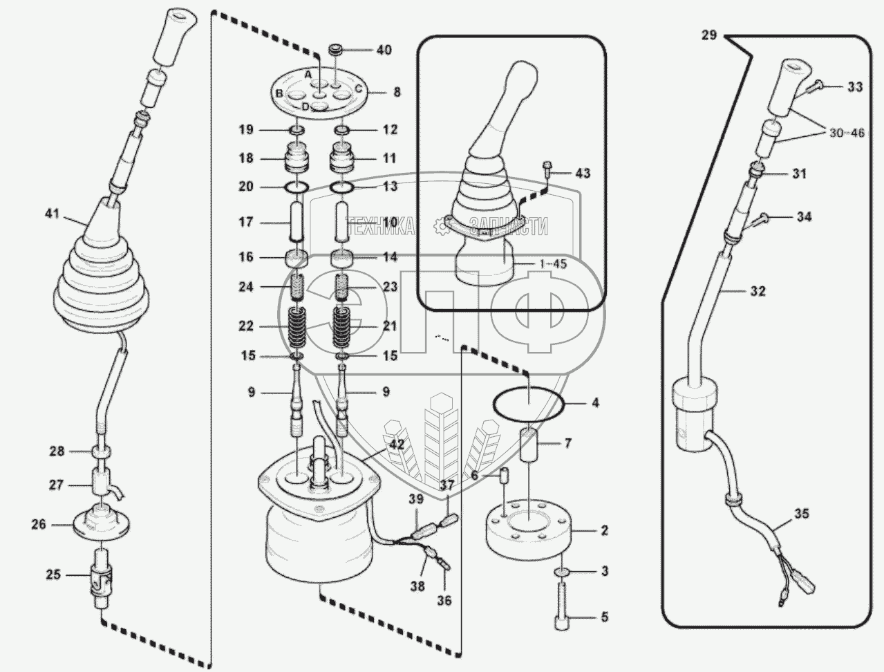 Каталог запасных частей к технике: SDLG LG6150E. 11211825 Servo system, remote control valve