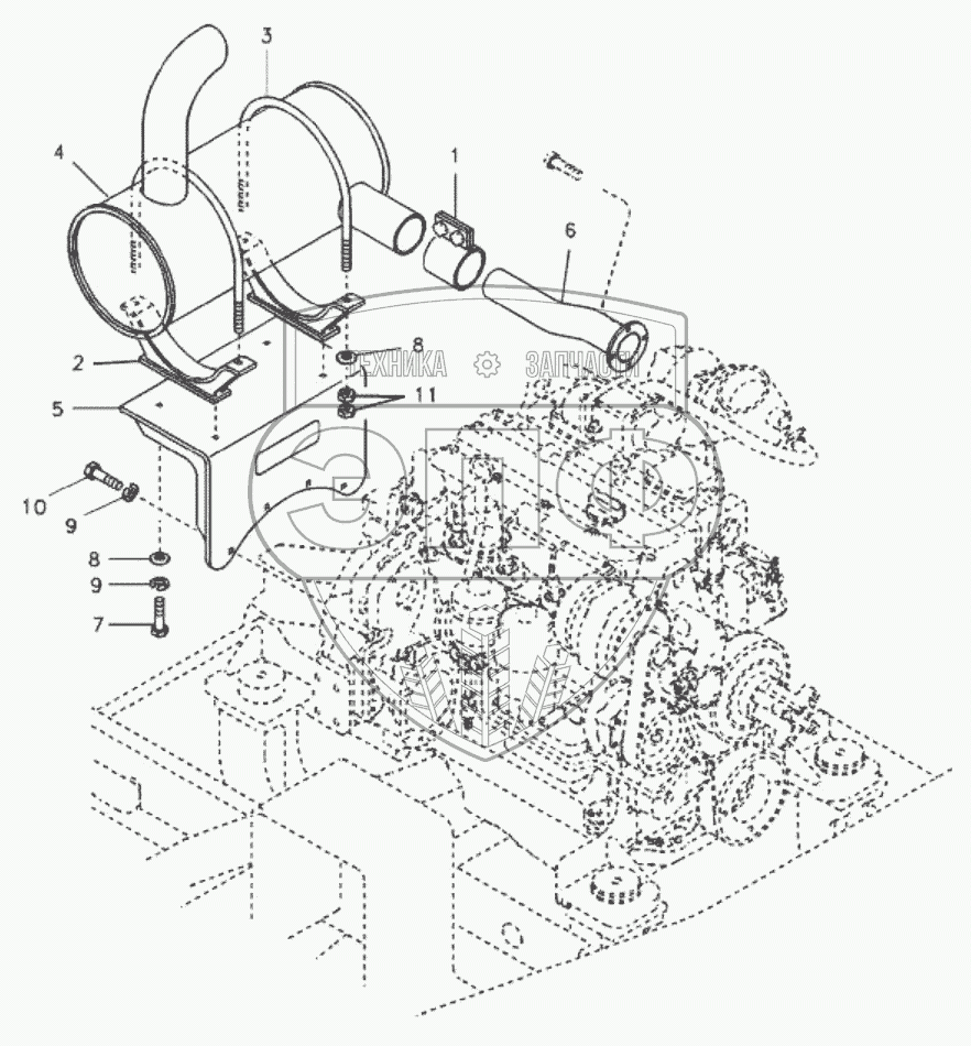 Каталог запасных частей к технике: SDLG LG6150E. 11212924 Exhaust system