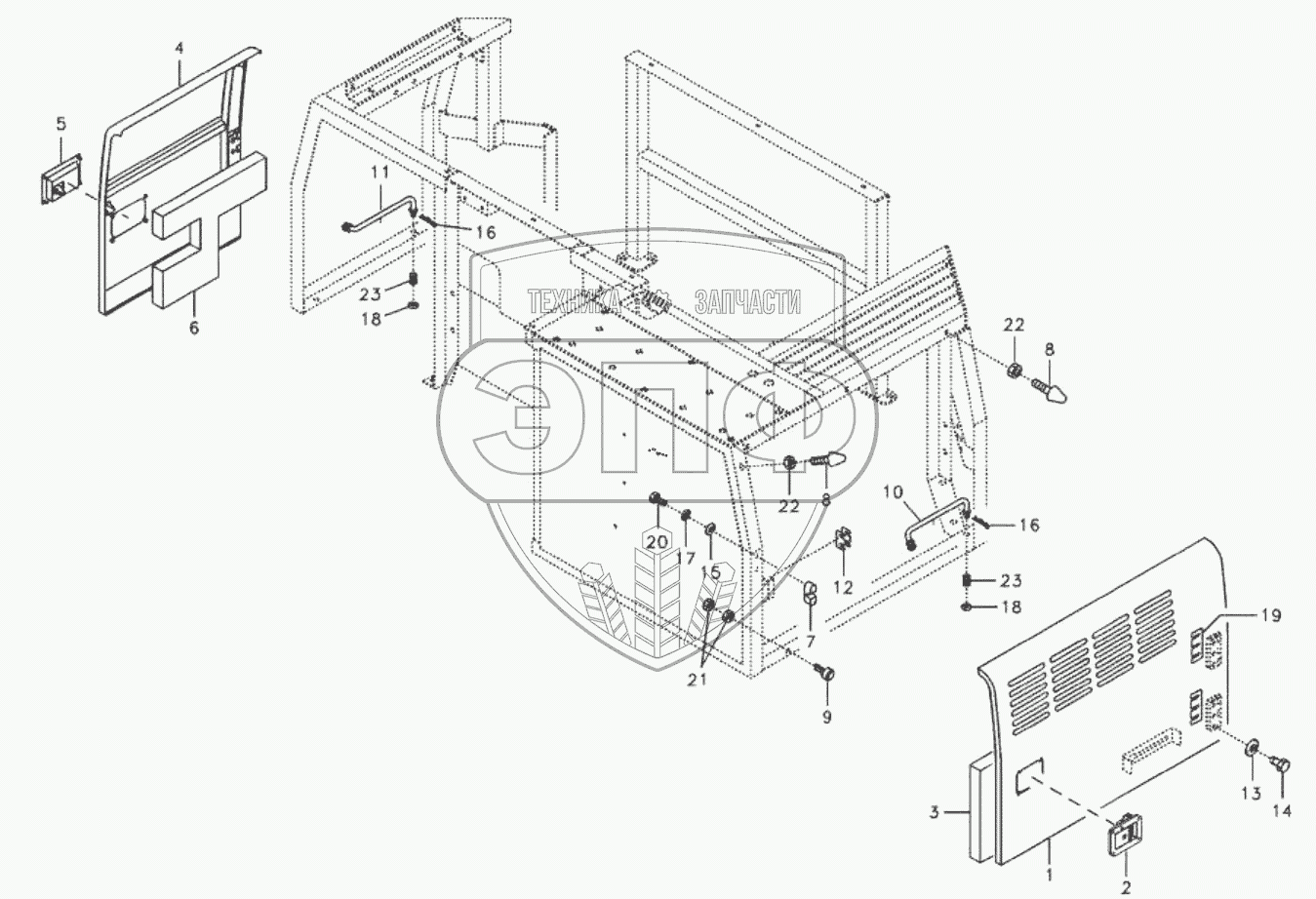 Каталог запасных частей к технике: SDLG LG6150E. 11213485, 11212924 Door, side