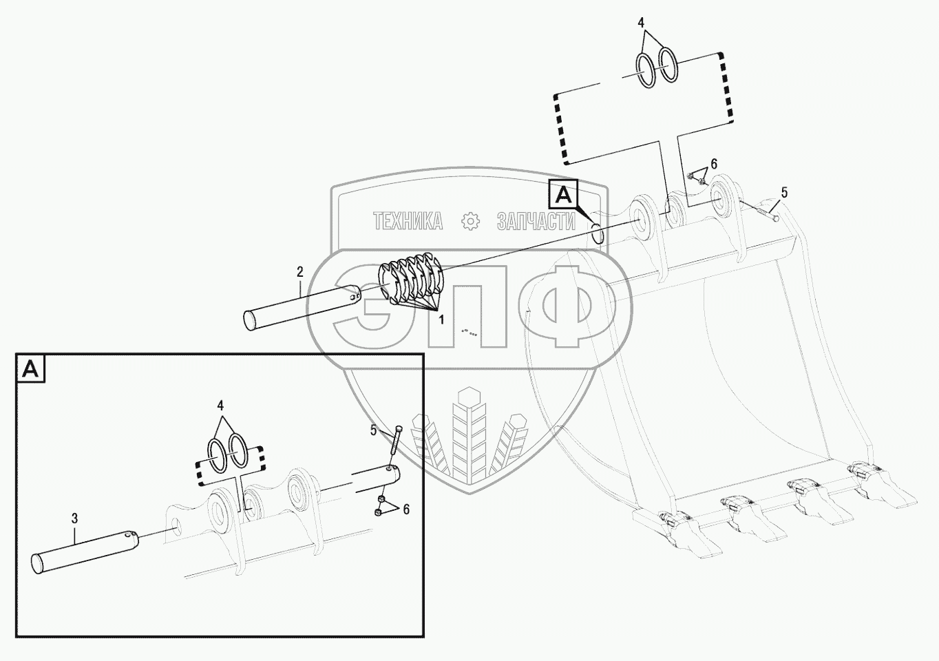 Каталог запасных частей к технике: SDLG LG6210E. Articulations with the bucket