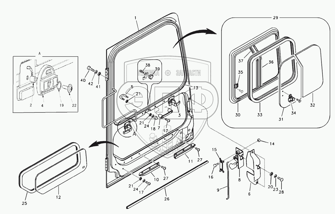 Каталог запасных частей к технике: SDLG LG6210E. Door, operator's cabin